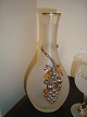 Unika karaffel m. prop og 2 glas med dekoration af Sterling sølv og indlagt rav. Designermærke G/D. Højde karaffel 27 cm, højde glas 16,5 cm
