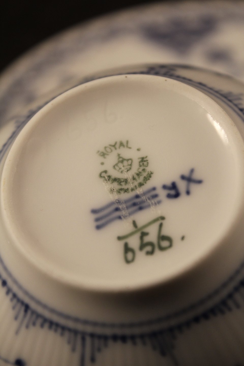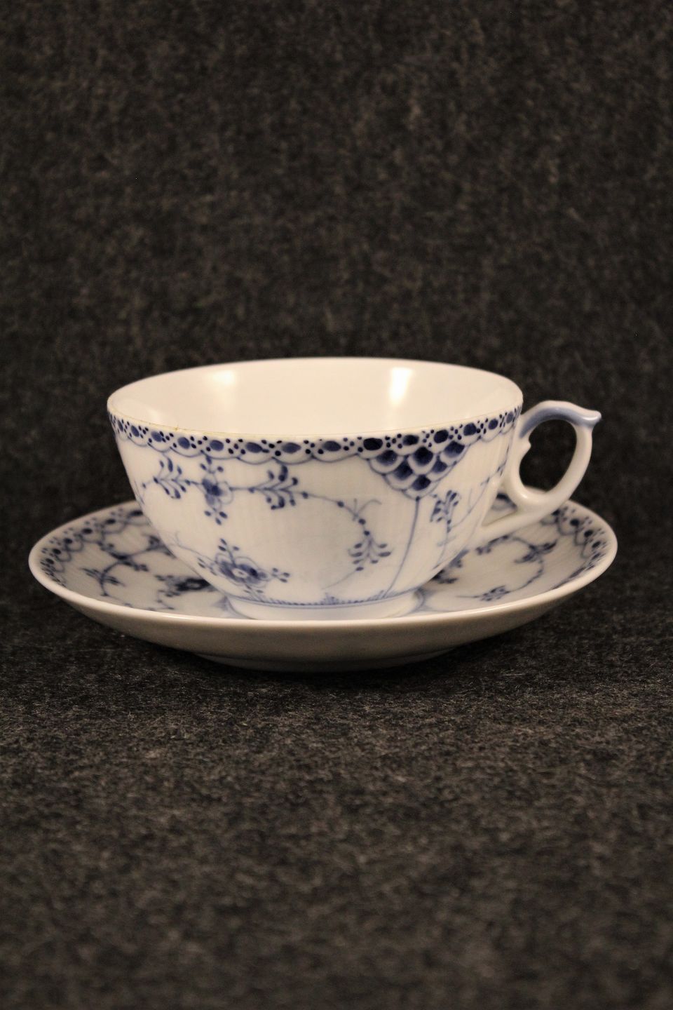 Royal Copenhagen Blue Fluted half lace teacup. Decoration number: 1/656.Cup Dia.:10,5cm. (1 pc. available) Item number: RC# 1/656. 2.sort.