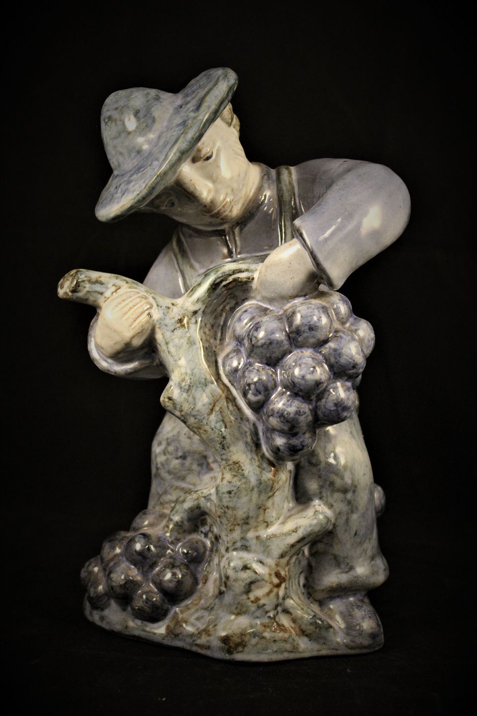 Glazed ceramic figure from L.Hjorth - Denmark. of grape picker. H: 25cm. Item number: Hjorth - Drueplukker