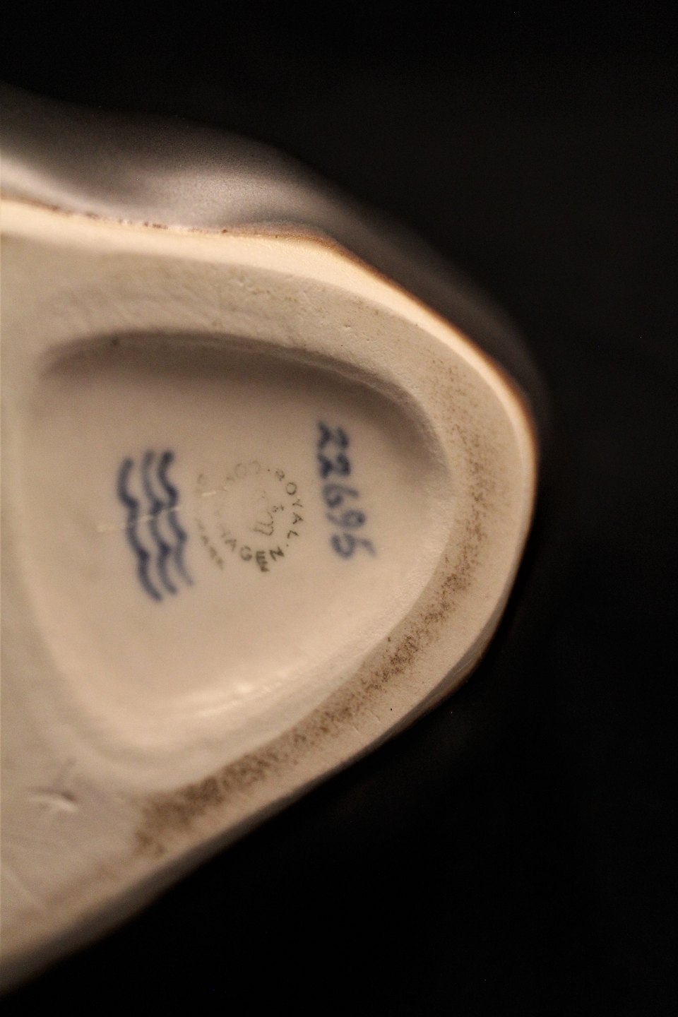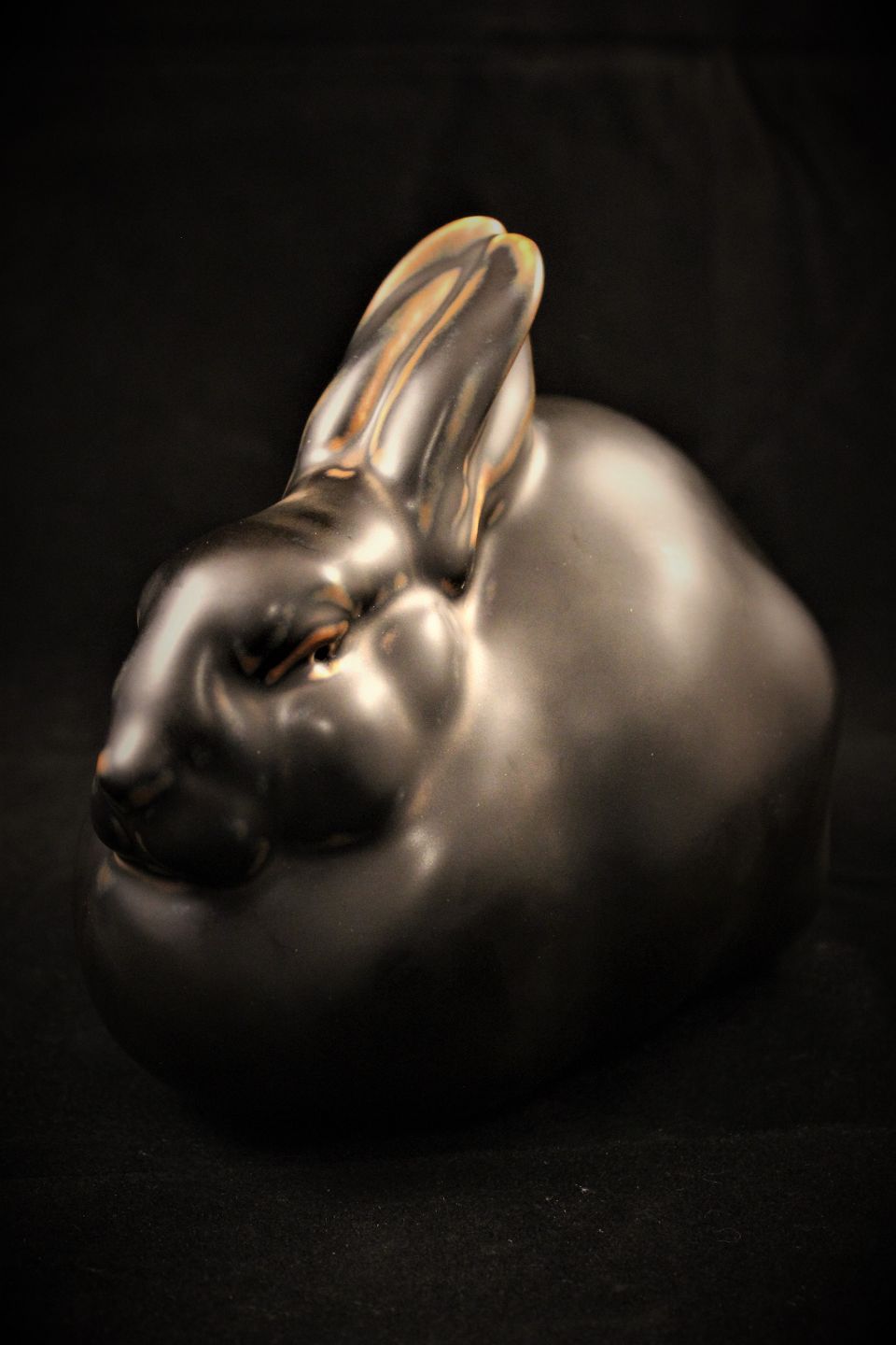 Royal Copenhagen glazed stoneware rabbit by Jeanne Grut. Decoration number: 22695. Factory 2.quality. Has a small glaze defect on one side.