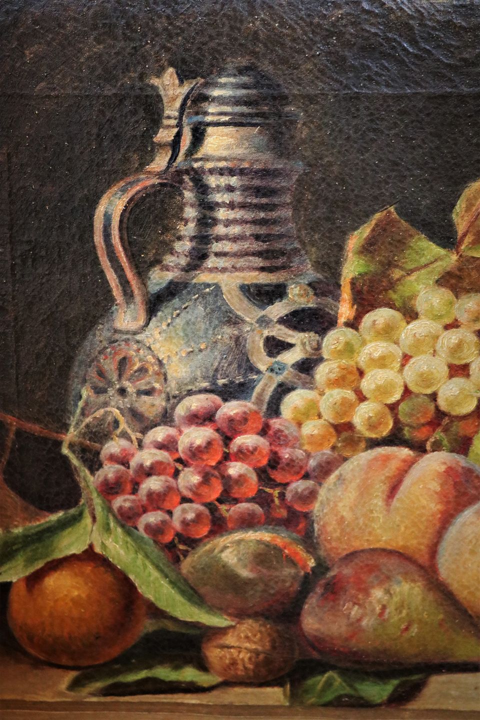 Antique "Still life" oil painting painted on canvas with fruits. The painting is dated 1919 and signed Müncherner Petersen. Dimensions: 36x58cm.