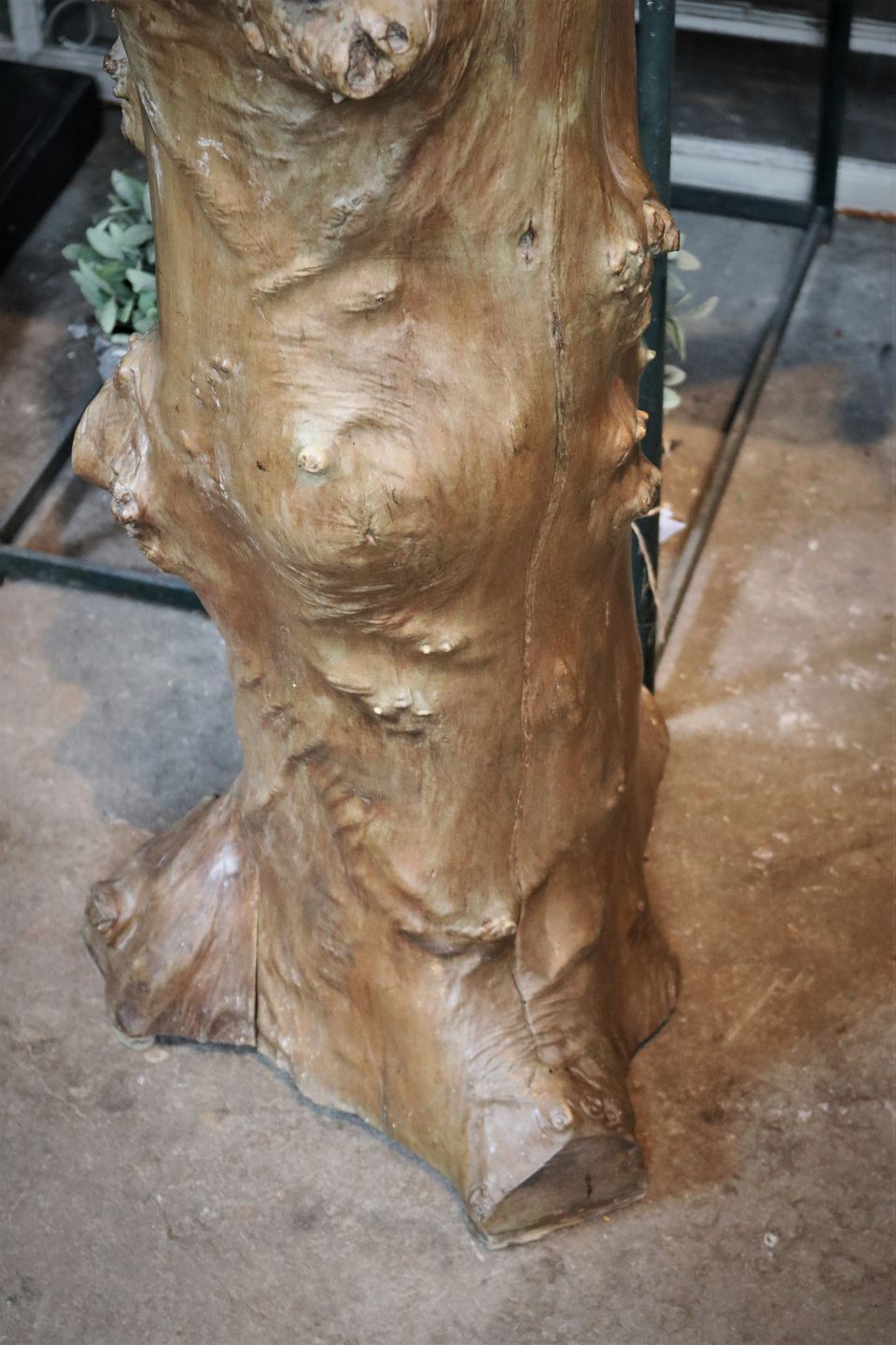 Pedestal in the form of an old decorative patinated tree trunk. H:103cm. Dia .: bottom:33cm. Top:22cm.