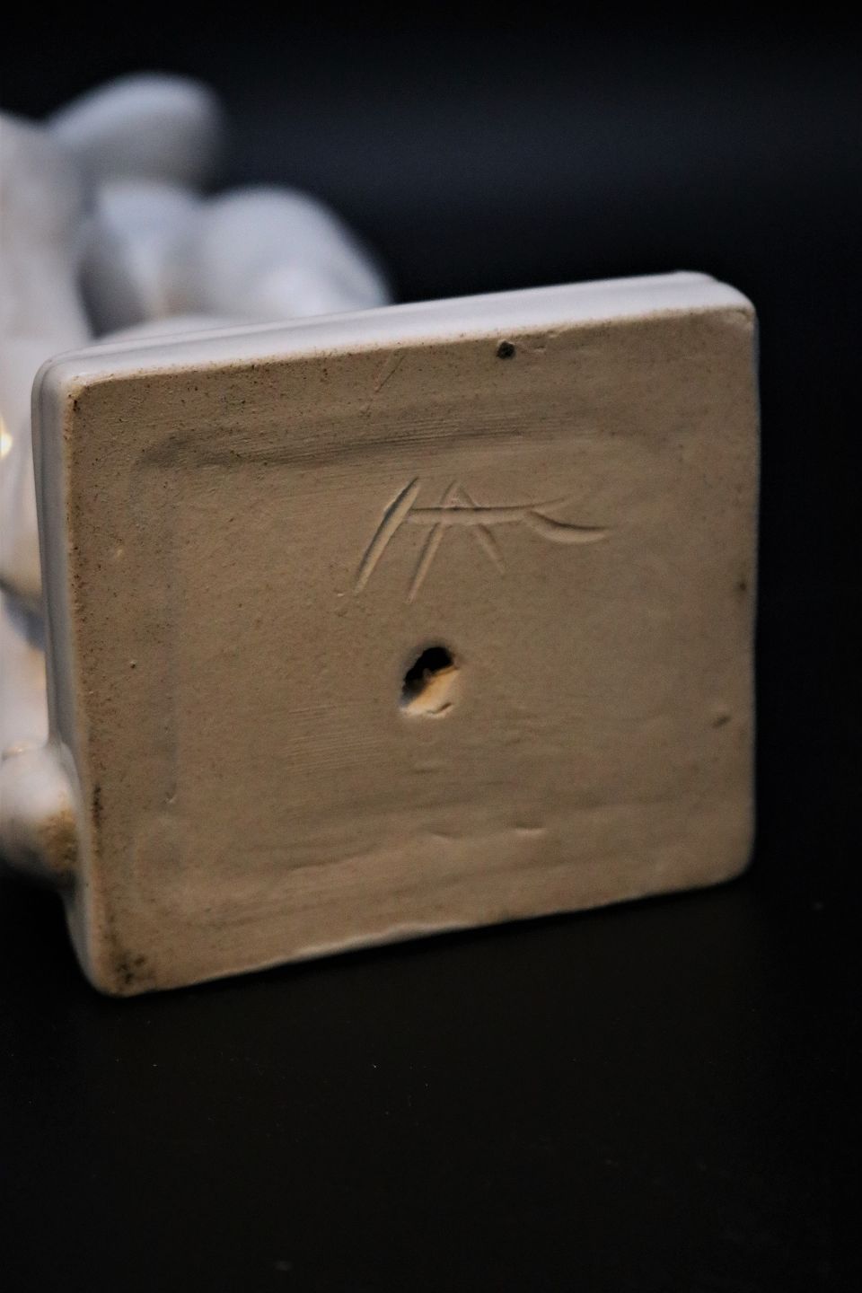 Hvid glaseret keramik figur fra Kähler af kvinde med æble.