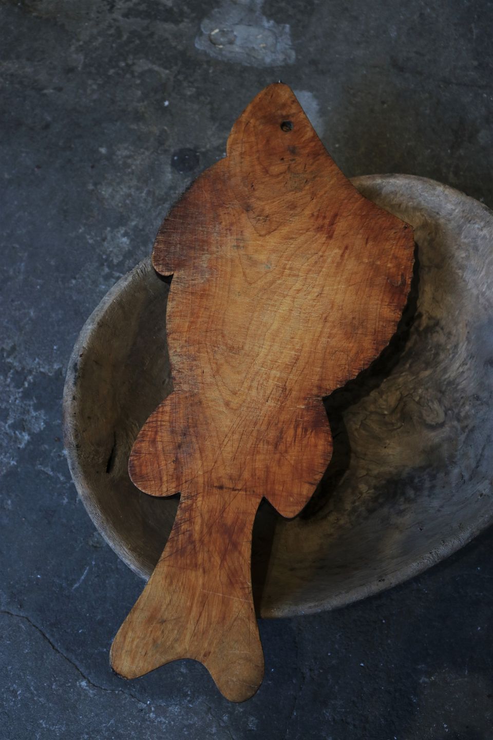 carved in the shape of a fish. L&W: 50x21cm.