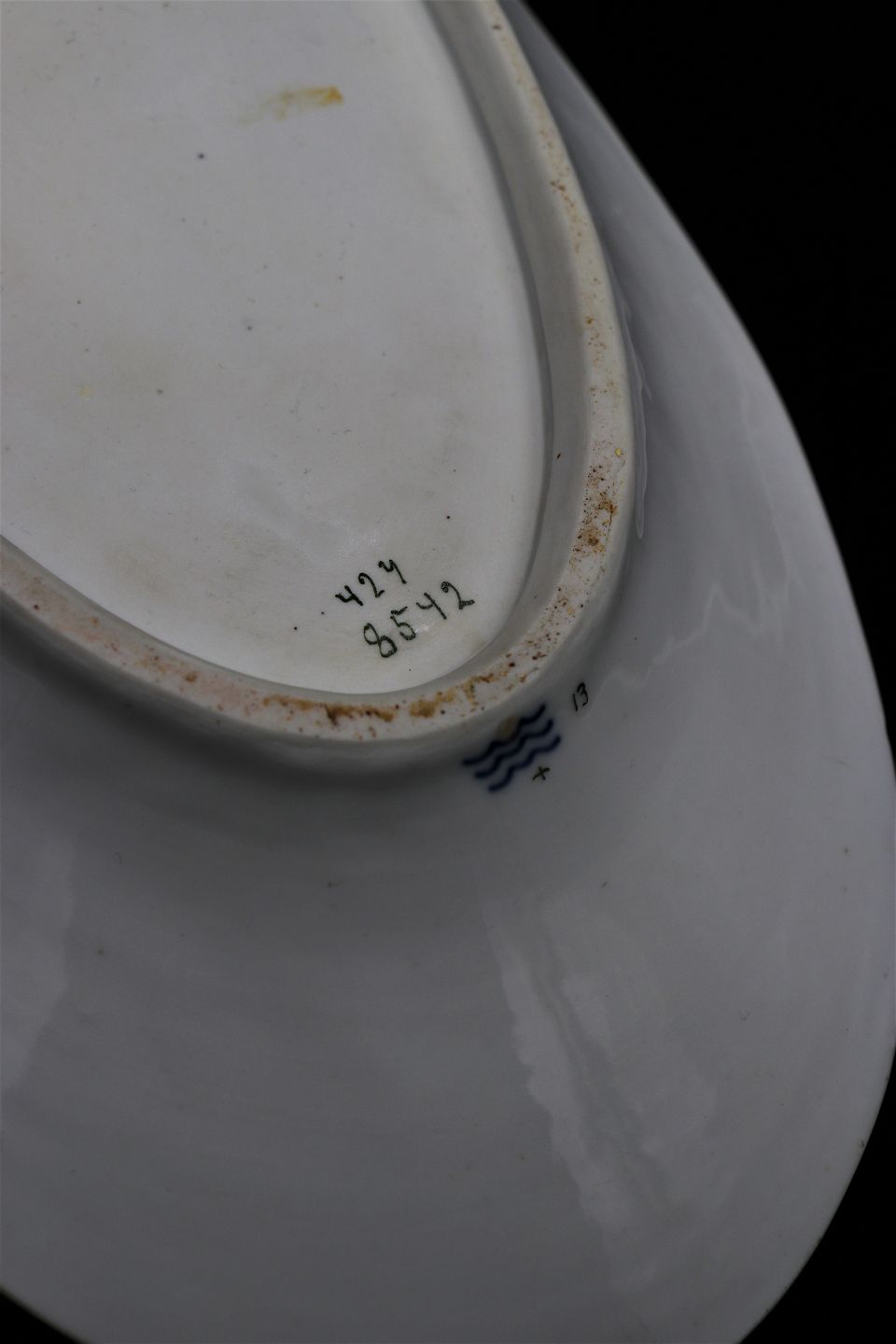 There are minimal small dots in the glaze and a MINI chip on the underside of the dish! , but otherwise in fine condition. See extra picture.