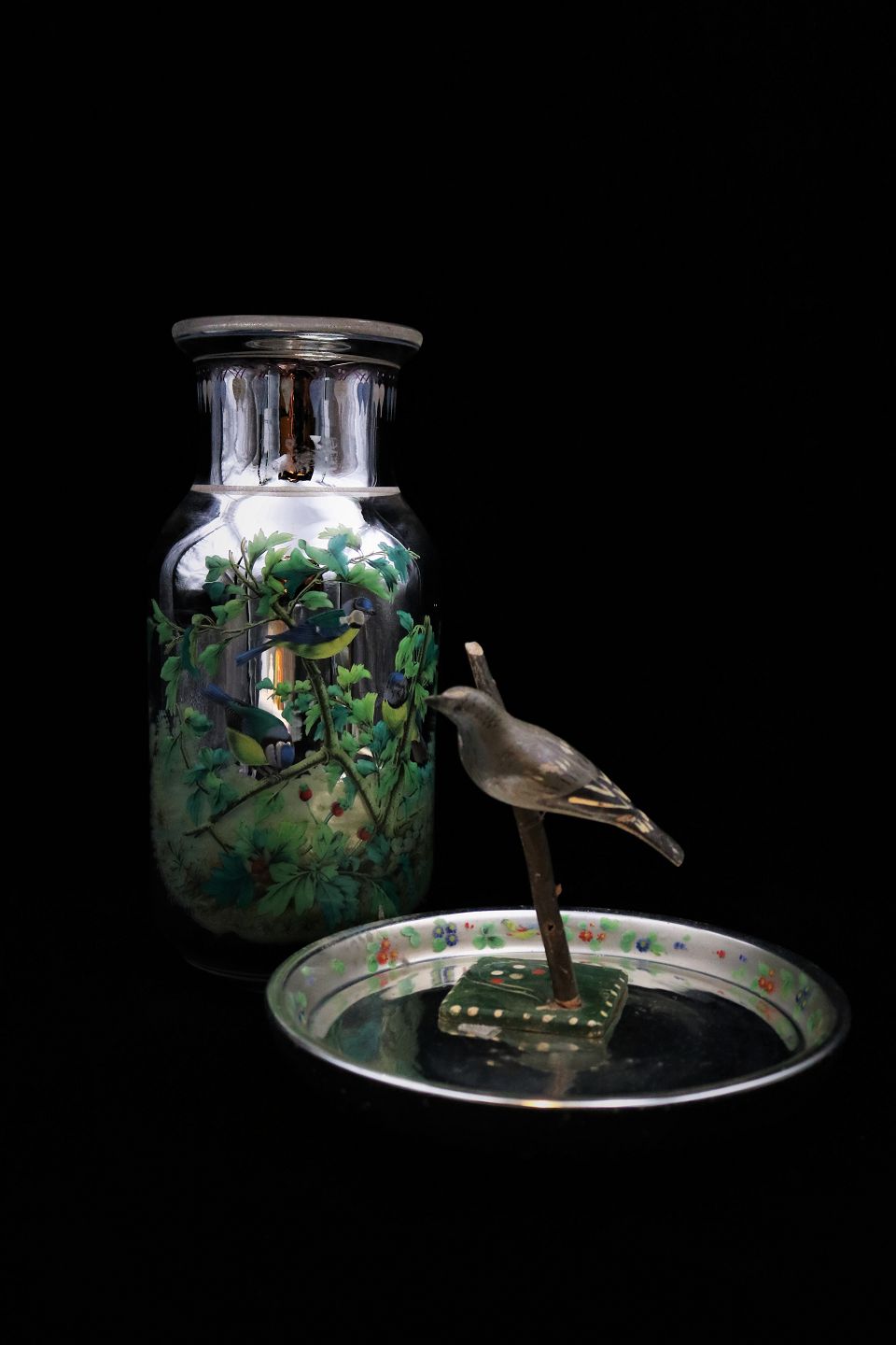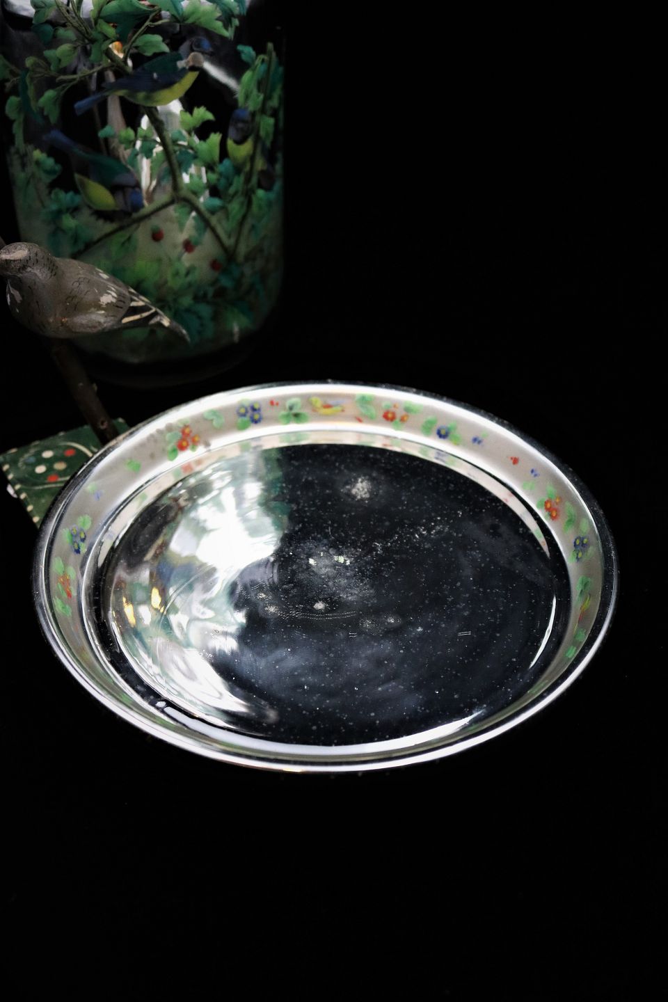 Rare, antique dish in poor man's silver ( Mercury Glass ) from the 1800 century with a fine patina.