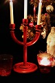 Gammel svensk jule lysestage i rødmalet træ med plads til 3 små julelys.