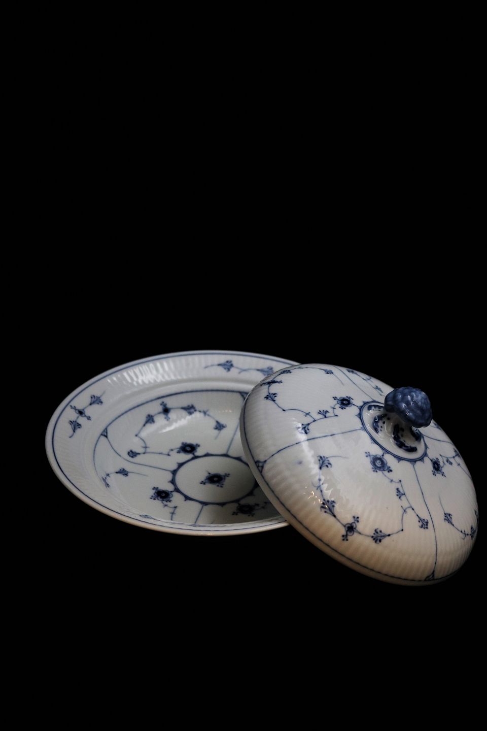 Rare antique , Royal Copenhagen round Blue Fluted Plain lid dish from 1850-70. H:12cm. Dia.:23cm.