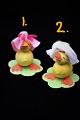 6 & 7 ) Small Easter chickens in eggshells. H: 7 cm. - DKK 175 each