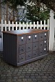 Old, 1800s grocery counter with a total of 15 drawers, some with old white porcelain signs...