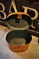 Old oval metal box with old original painting and fine patina. Super fine for storage. H:29 cm. 38x28cm. Item number: Metal box nr.1
