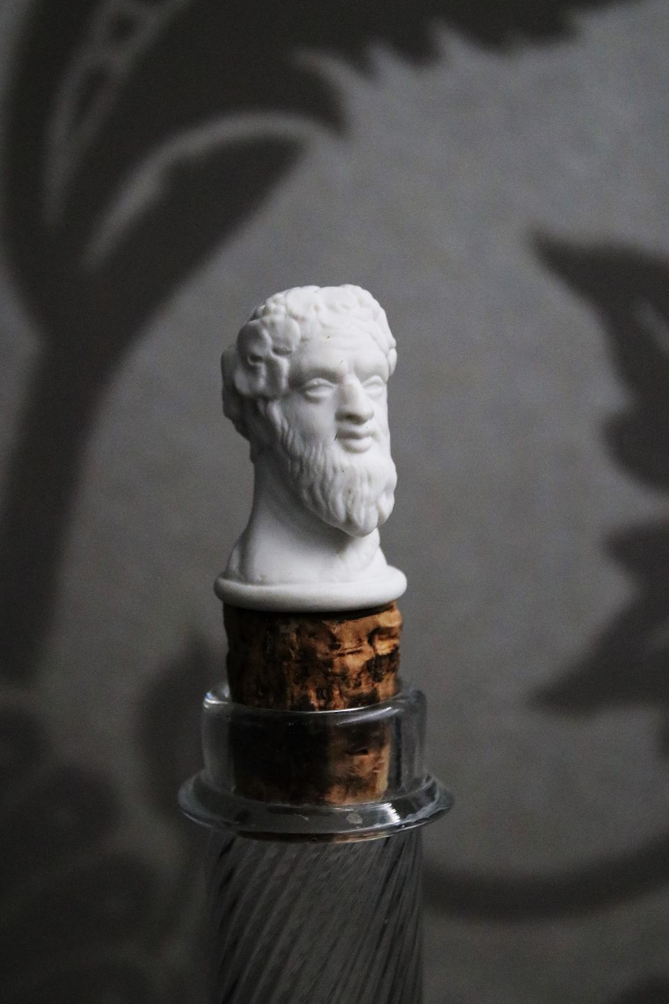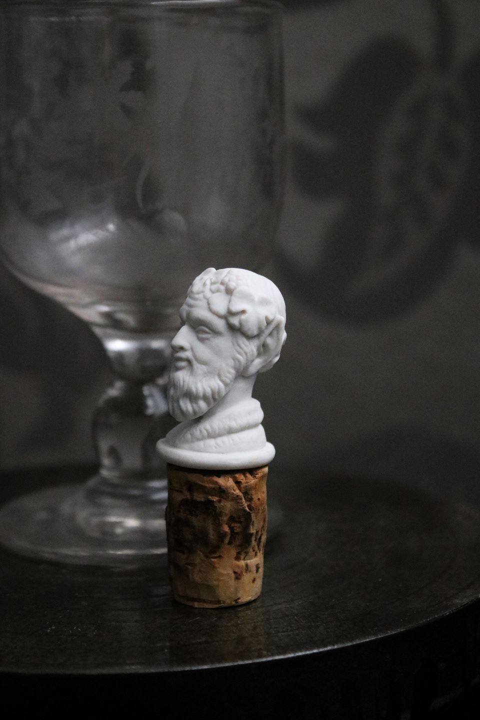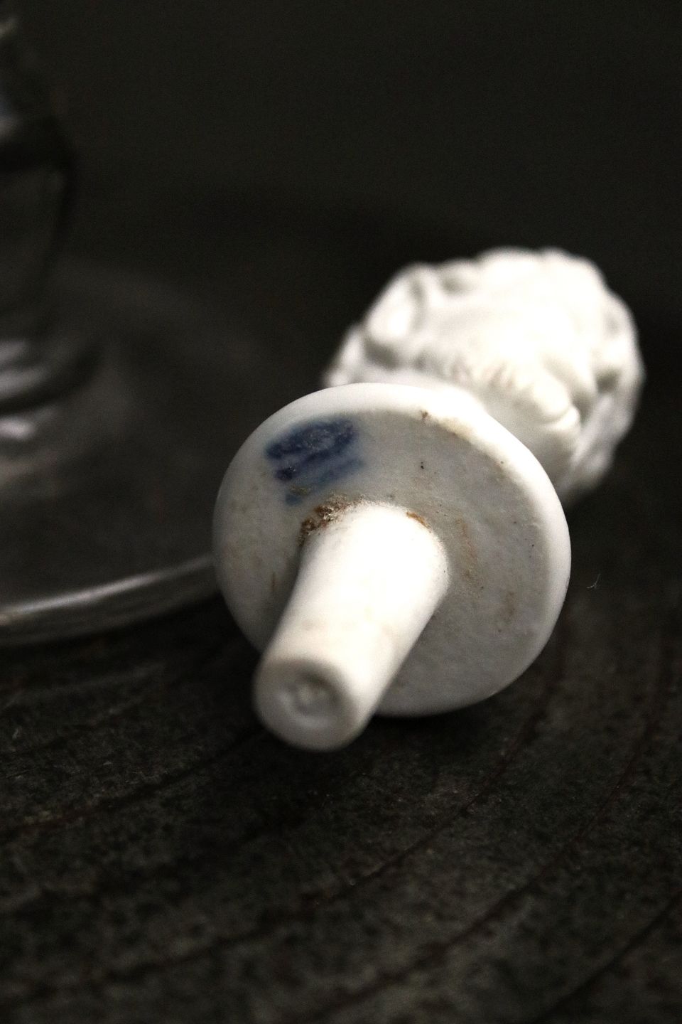 19th century wine stopper from Royal Copenhagen in the shape of a man's bust in biscuit with cork stopper...