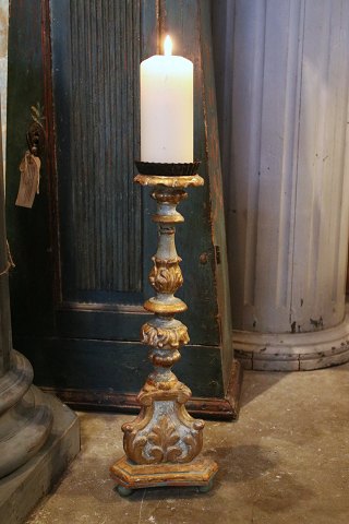 Dekorativ gammel fransk kirkelysestage i bronze med plads til 2 stearinlys og dekoreret med 1 sjælden hvid opal glasblomst.