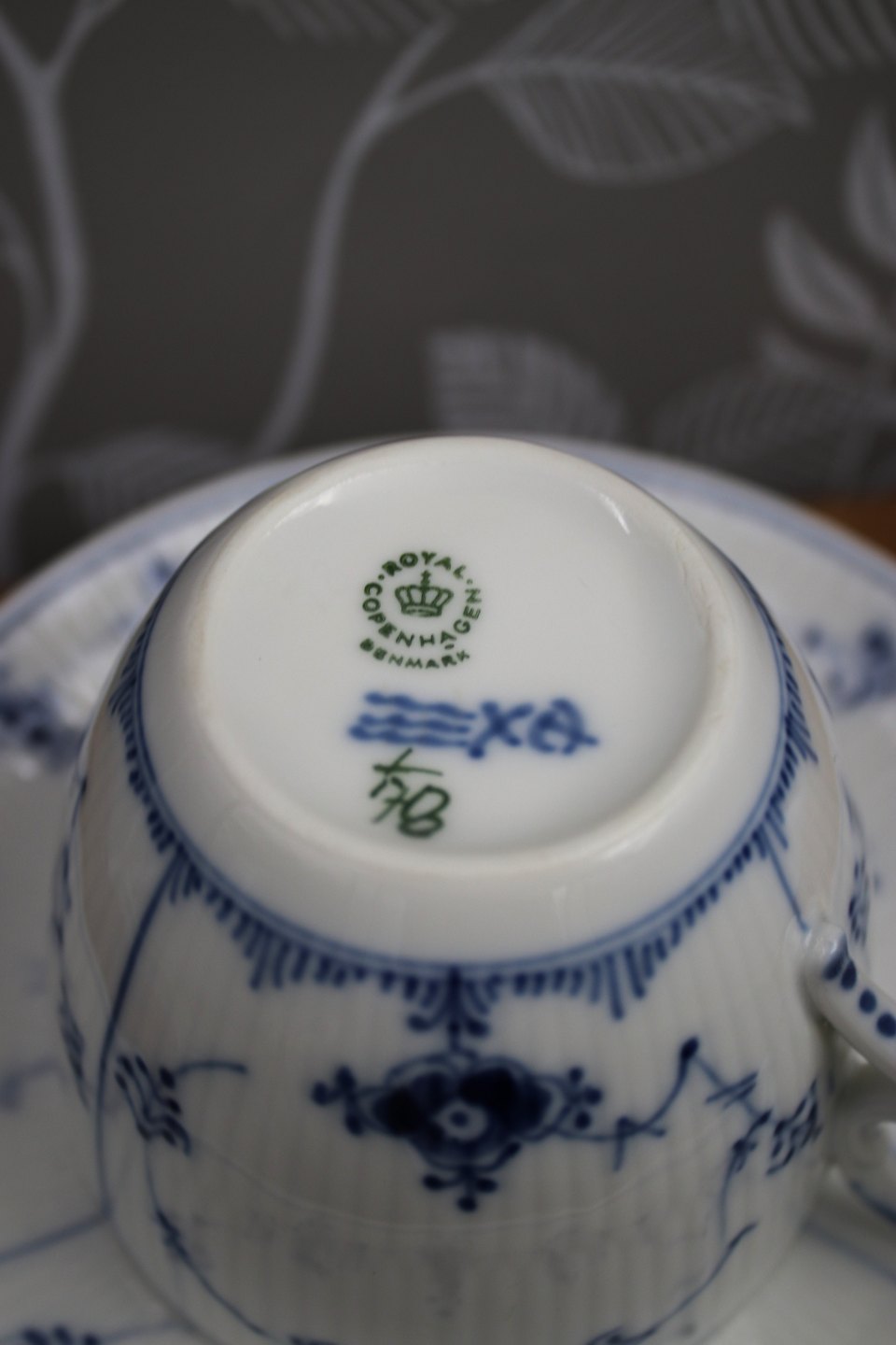 Stor Musselmalet Riflet kaffekop fra Royal Copenhagen.