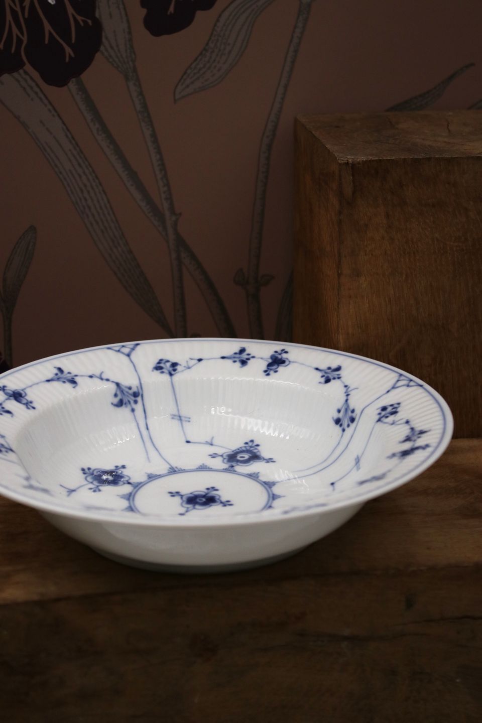 Extra deep Blue Fluted plate from Royal Copenhagen, from 1898-1923. Decoration number: 1/166. 2.sort. H: 5.4cm. Dia.: 23cm.