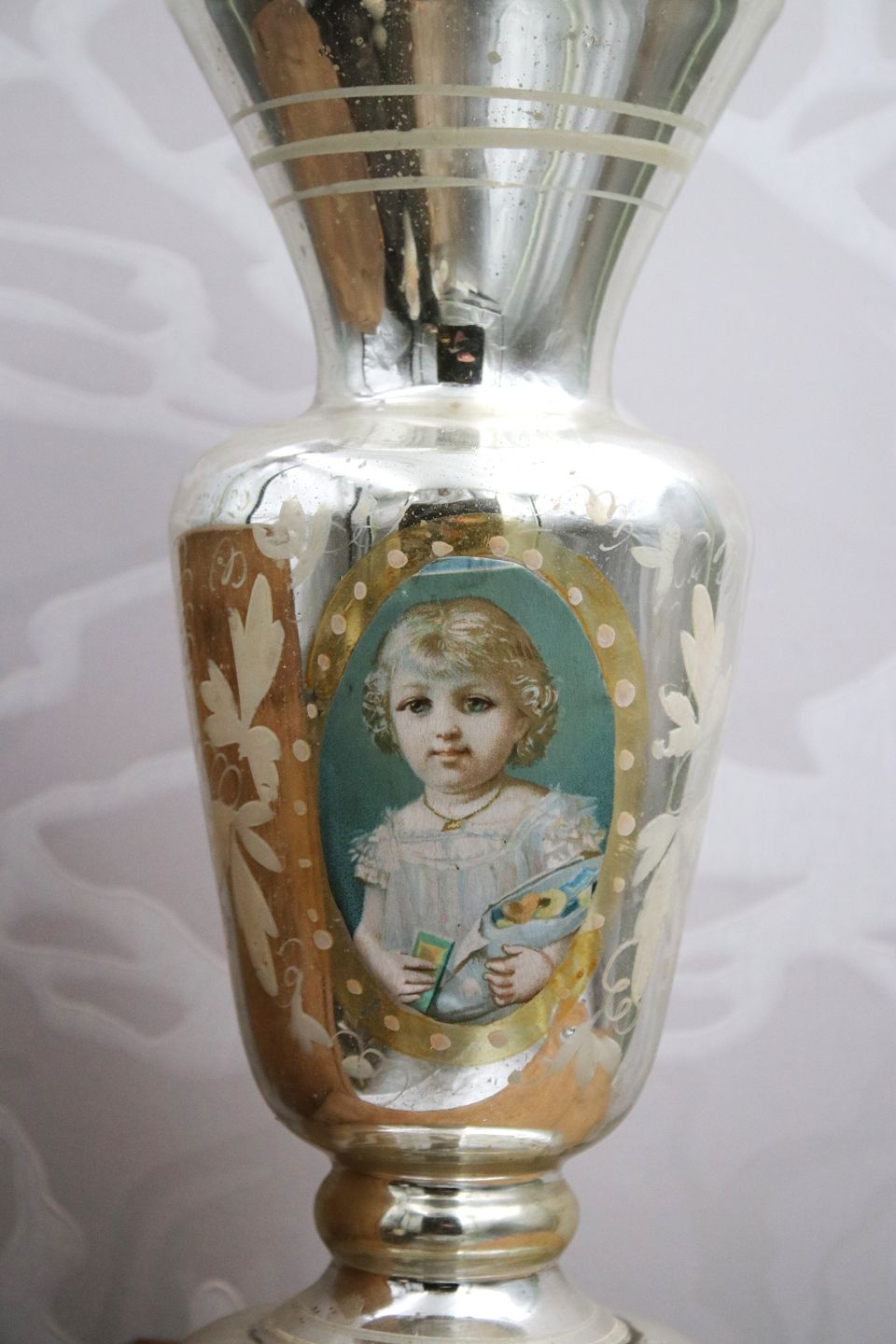 with painted leaf tendrils and hand-painted portrait of a little girl