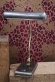Gammel skrivebordslampe i patineret messing. H: 31cm. Skærm Dia.: L: 20,5cm. Dia.: 4,5cm.