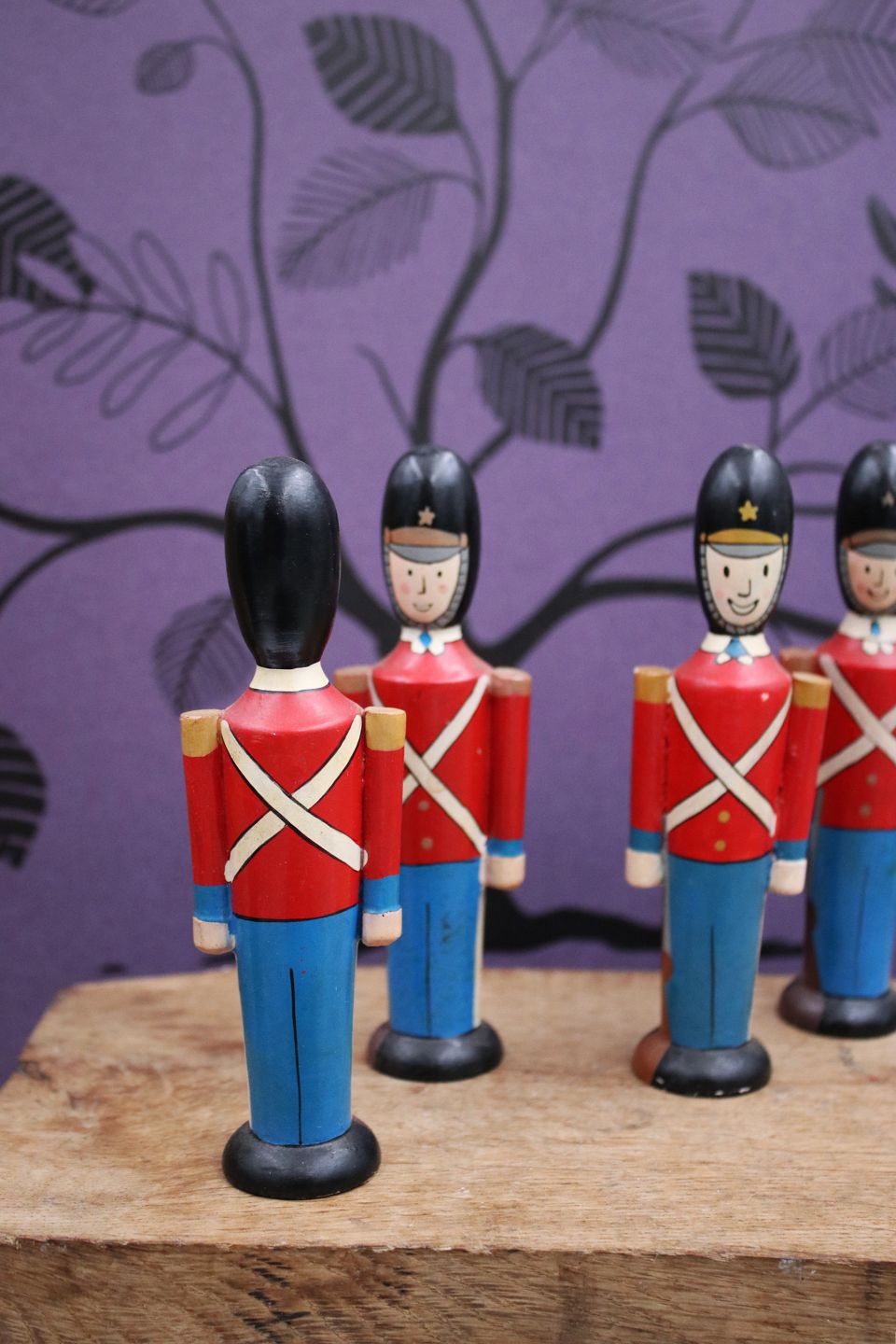 Dekorative , gamle Gardehusarer i fuld uniform i bemalet træ...