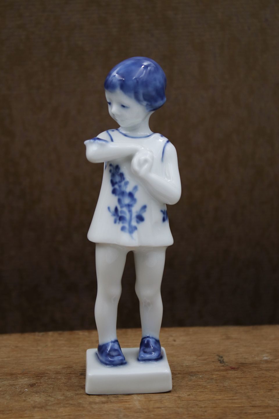Royal Copenhagen Blå Blomst porcelænsfigur af lille pige med sommerfugl på armen...