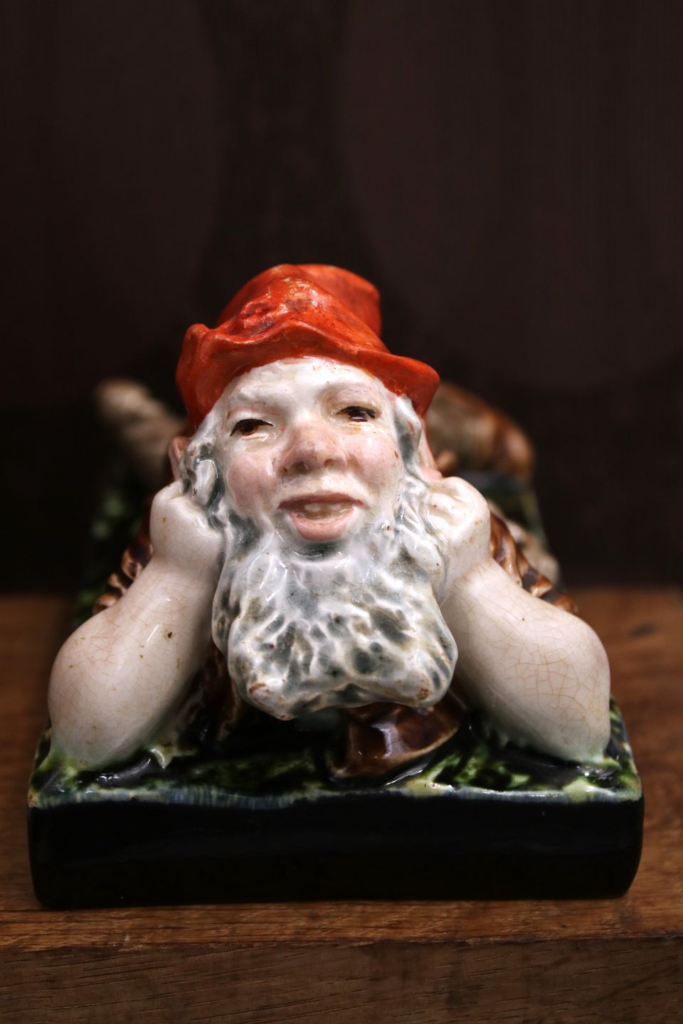 Antik , tysk keramik nisse i fin majolica glasur fra ca. 1880...