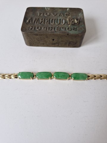 Smukt armbånd i 18 kt guld med jade Stemplet: THC - 75% - armbåndet er testet hos Vitus Guld for lødighed Længde 18 cm. Bredde 7 mm.