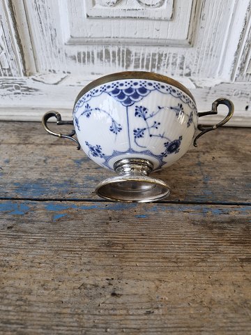 Royal Copenhagen Blue Fluted half lace sugar bowl with silver plated mounting.