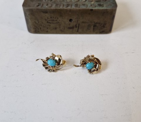 Pair of beautiful ear clips in 14 kt gold with turquoise.