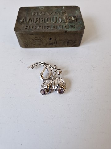 Vintage sølv broche i form af blade og blomster med lilla sten af Hermann Siersbøl Stemplet: HS - Sterling - Denmark Mål: 3 x 4,5 cm. Vægt: 5,4 gram.