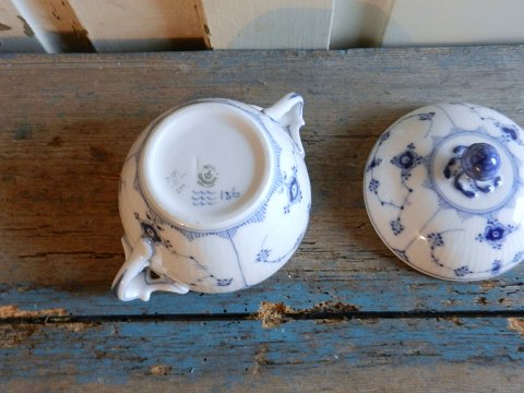 Royal Copenhagen Musselmalet riflet sukkerskål no. 136