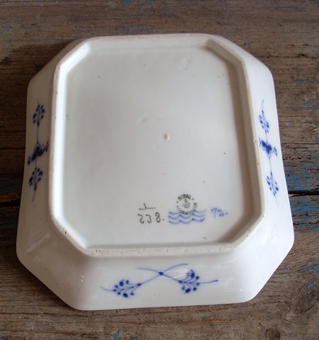 Royal Copenhagen Musselmalet riflet sættefad No. 238, 2. sort. Mål 17x19cm. Produceret mellem 1898-1923