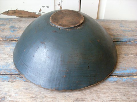Smuk gammel svensk træ skål, smukt bemalet i petroleums blå farve.