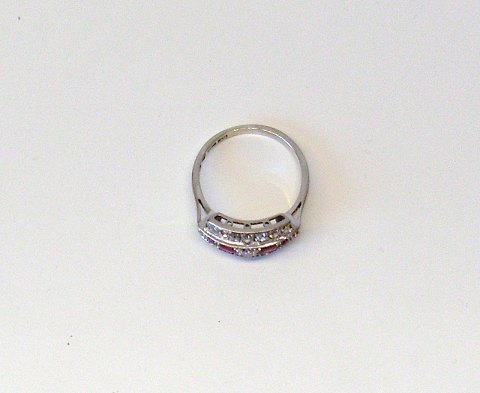 Art Deco ring i 18 kt hvidguld besat med talrige diamanter og rubiner