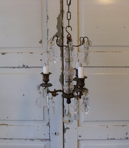 Skøn lille prisme lysekrone med tre lys-arme til stearinlys.