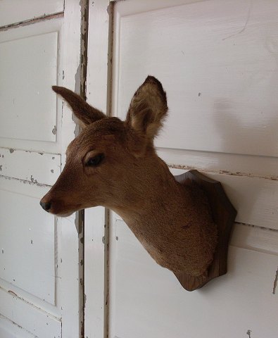 Hovedmonteret dådyr på plade. Fremstår i meget fin stand. Højde 40cm. Mål fra plade til snude 32cm.