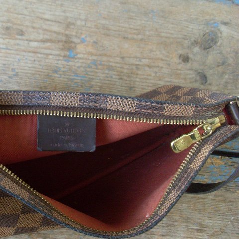 Lækker Louis Vuitton håndtaske, model Pochette i Damier canvas. Fremstår i pæn stand. Mål 12x21,5cm.