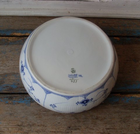 Royal Copenhagen Musselmalet riflet sjælden stor salatkumme med bølget kant No. 451, 2. sort. Højde 9,5cm. Diameter 25cm. Produceret mellem 1923-35.