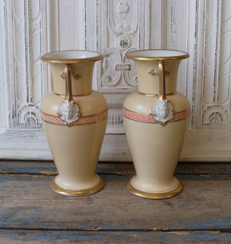 Par B&G Tosca prydvaser, dekoreret i beige og okseblodsfarver med a al grecque - bort.