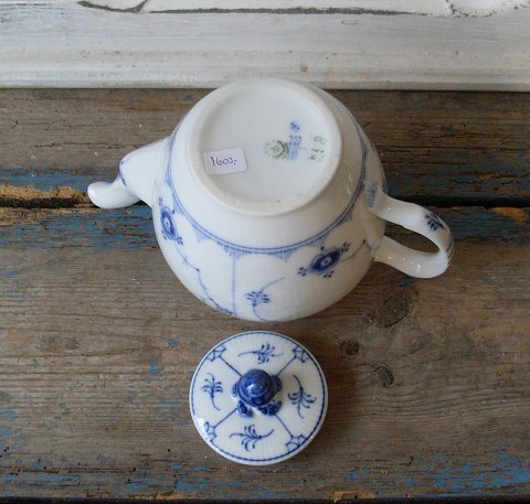 Royal Copenhagen Musselmalet riflet tekande No. 258, 1. sort. Produceret mellem 1923-35 Højde 14,5cm. Længde 21cm.