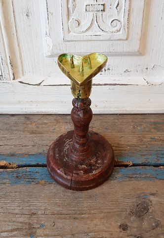 19th century candlestick made in wood and brass, shaped like a heart, the candlestick is a so-called "love gift" Height 15.5 cm.