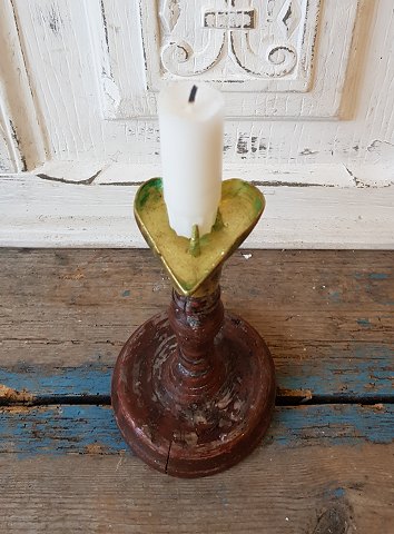 1800tals profitstage, lysestage udført i træ - lyspiben er udført i messing, formet som et hjerte, stagen er en såkaldt "kæreste/kærligheds gave"