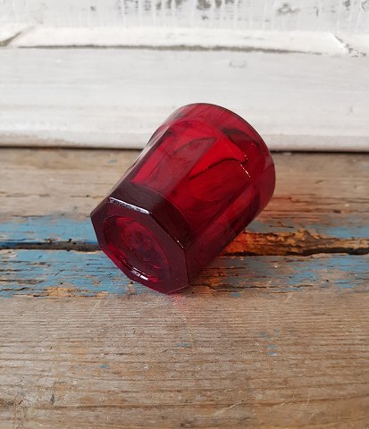 Smukt rubinrødt studs glas/børne glas fra Fyens Glasværk produceret fra 1910. Fremstår i perfekt stand. Højde 5,5cm.
