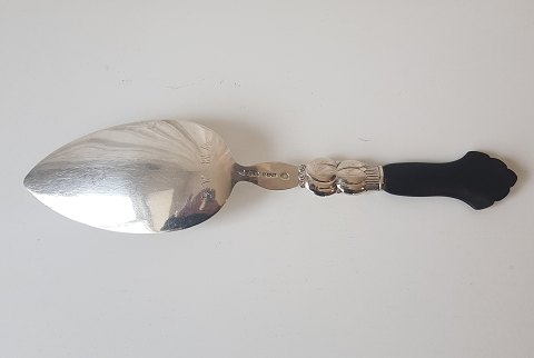 Serveringsspade i sølv med håndtag i træ Stemplet de tre tårne 1930 - SF Fremstår med gravering på bagsiden - kan fjernes. Længde 27,8 cm.