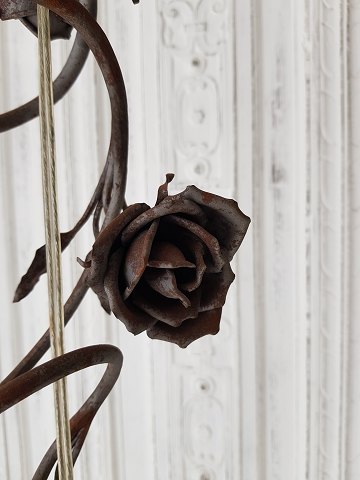Lovely hall lantern in the form of twisted rose shanks with glass dome. Length 120 cm.