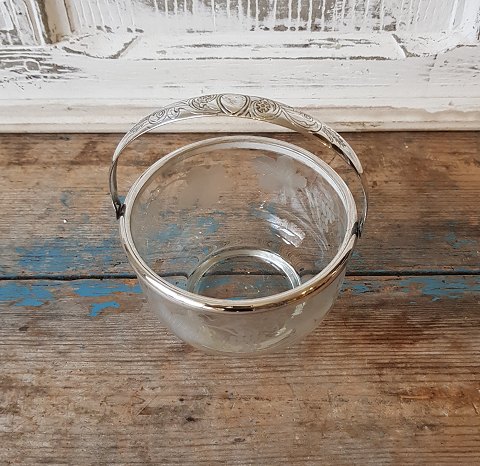 19th century sugar bowl mounted with silver plated handle, decorated with wine leaves Height 7.5 cm. Diameter 11.5 cm.