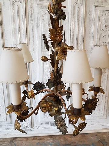 Meget smuk 1800tals fransk femarmet lysekrone dekoreret med blomster og blade. Diameter 70 cm. Højde 50 cm.