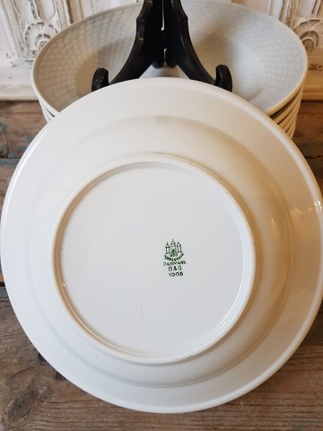 B&G Grå tone lille dyb tallerken, Hotelporcelæn med logo "Palæ" fra Palæ konditoriet i Horsens.