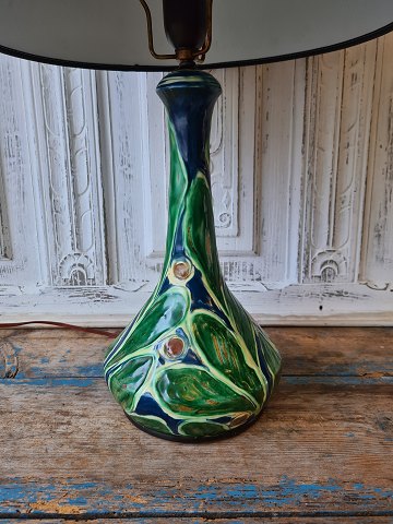 Kähler kohorns decorated table lamp in blue, green and brown colors Height of the ceramic part 32 cm. Height incl. Screen 53 cm.