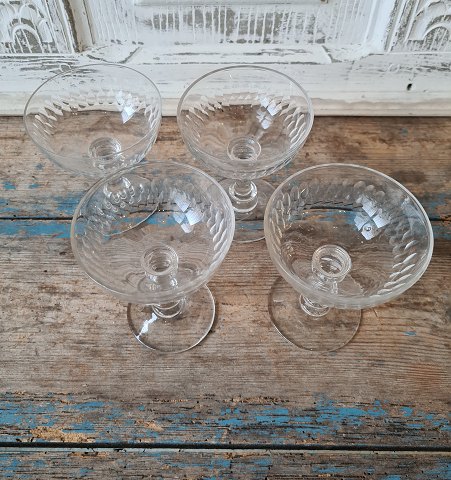 Sæt på fire smukke franske champagne skåle dekoreret med oliven slibninger.
