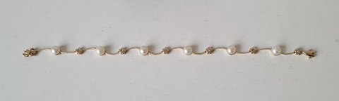 Bernhard Hertz smukt og feminint vintage armbånd i 14 kt guld med 6 perler og 6 brillanter. Stemplet: BH - 585 Længde 19 cm. Bredde 1 - 5 mm.