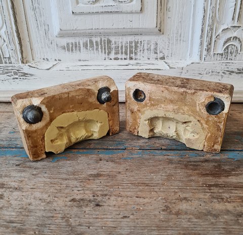 Gammel bagerform til fremstilling af marcipan grise Mål på selve formen: 11 x 7 cm. Mål på grisen: 3,5 x 6,5 cm.